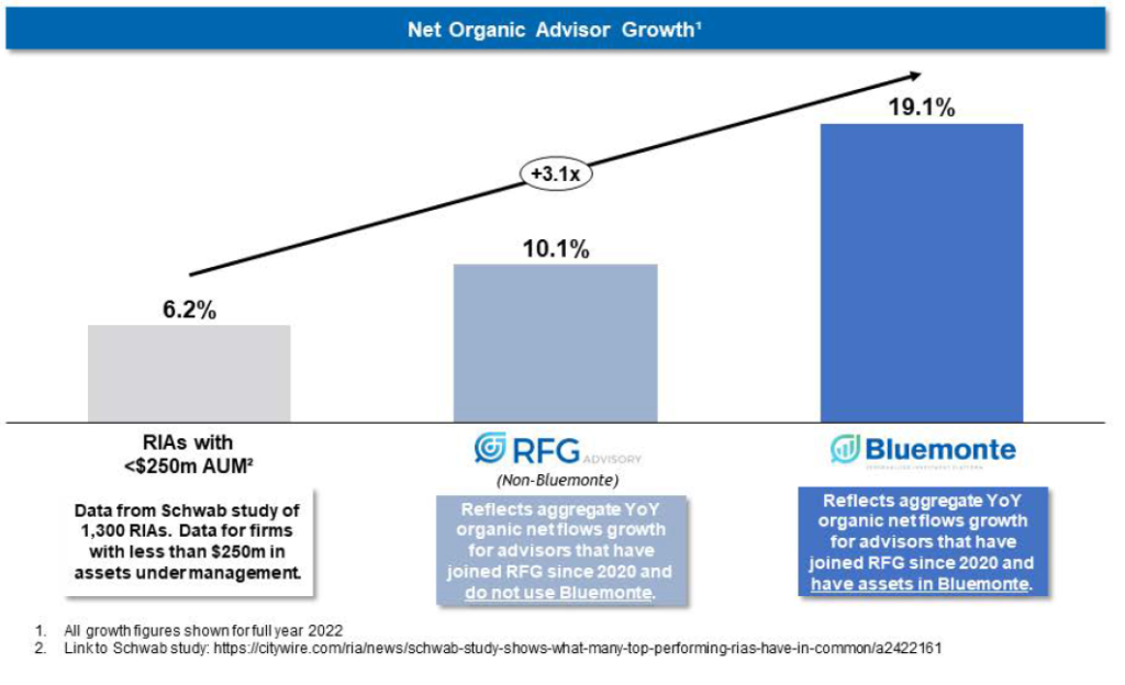 RFG helps advisors accelerate their growth through dedicated marketing support and practice management, with numerous examples of 2x+ practice growth on our platform